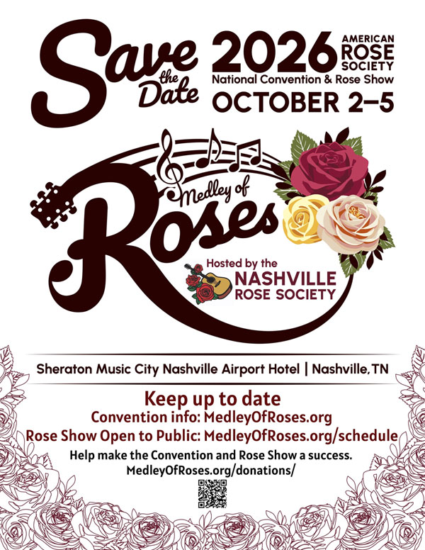 Medley of Roses – 2026 ARS Convention & Rose Show coming to Nashville October 2-5, 2026. Click http://medleyofroses.org for more information.